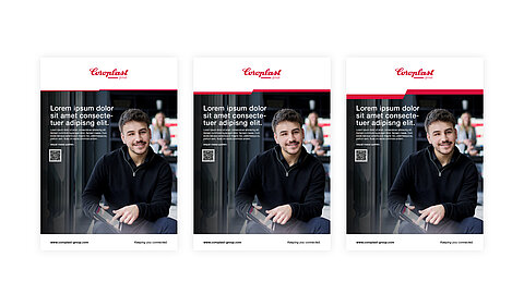 Bei der Gestaltung der Anzeigen für die Coroplast Group stehen die Menschen im Fokus. Sie werden zum Hauptmotiv.