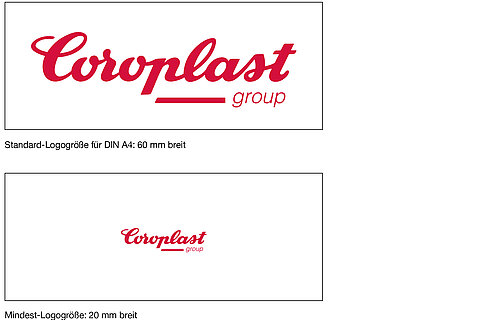Das Logo wird bevorzugt in der Farb-Version eingesetzt, soweit dies drucktechnisch möglich ist. Hierbei steht es frei auf weißem Grund. Die Primärfarbe der Coroplast Group ist Rot. Für dunklen oder roten Untergrund wird die Negativ-Version des Logos (weiß) verwendet. Bei hellem Untergrund und Schwarz-Weiß-Anwendung wird das Logo in 100 % Schwarz eingesetzt. Wird das Logo auf einem detailreichen Foto oder unruhigem Hintergrund platziert, wie z. B. Aushängen, so steht das Logo auf einer weißen, roten oder schwarzen Box unter Berücksichtigung der Logoschutzzone.