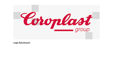 Für das Logo der Coroplast Group ist eine Schutzzone definiert, die den Mindestabstand zu anderen Elementen festlegt. Dieser Schutzraum wird durch die Höhe des kleinen Buchstabens „o“ im Coroplast Schriftzug definiert.