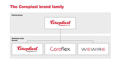 Die Coroplast-Markenfamilie besteht aktuell aus einer Dachmarke und drei Geschäftsbereichsmarken. Die Dachmarke Coroplast Group bildet die bindende und kulturprägende Arbeitgebermarke. Hinzu kommen die Marken Coroplast Tape, Coroflex und WeWire, die für die drei Geschäftsbereiche der Gruppe stehen.